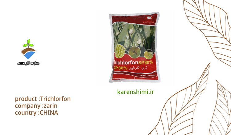 این حشره کش غیرسیستمیک با اثر تماسی و گوارشی می باشد. این سم از گروه فسفره آلی (ارگانو فسفره) است. این حشره کش با نام تجاری دیپترکس و فرمولاسیون های (EC 50%)، (WP 80%)، (SP 80%) و (P 96%) در بازار تولید می شود. این سم حشره کش عصبی بوده که با مهار آنزیم کولین استراز سبب مرگ حشرات می شود. افرادی که بر اساس توصیه پزشکی از کار کردن با ترکیبات ضد کولین استراز منع شده اند نباید از این حشره کش استفاده کنند. دوره کارنس تری کلروفن ۷ روز می باشد. این حشره کش در بسته بندی نیم و یک کیلویی از شرکت آریا شیمی در بازار موجود می باشد.